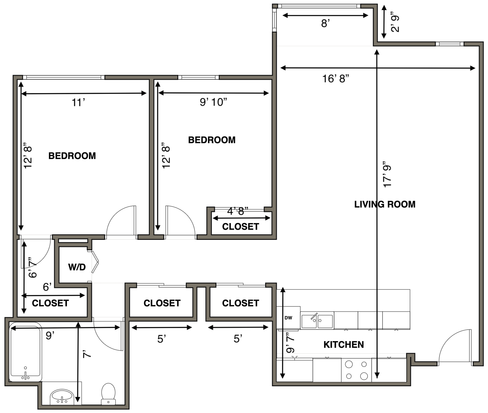 - Large walk-in closets